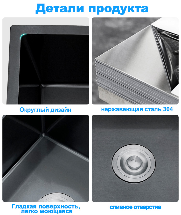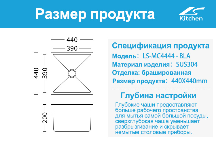 Квадратная черная раковина для умывания nano black из нержавеющей стали LS-MC444 BLA family apartment кухонная раковина