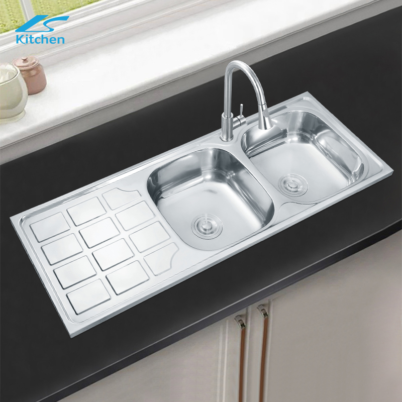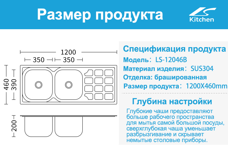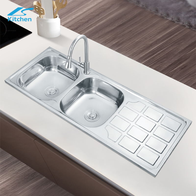 Коммерческая кухонная раковина оптовика LS-12046B двойная раковина из нержавеющей стали с пластиной