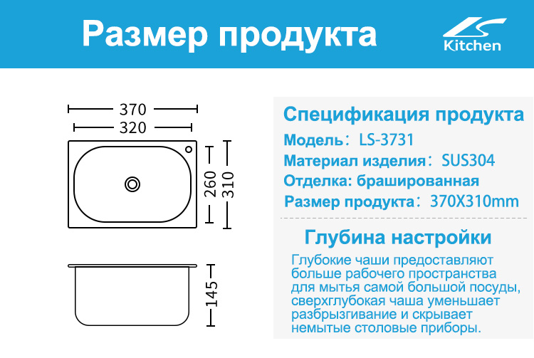 Кухонная мойка в современном деревенском стиле LS-3731 из нержавеющей стали для дома на колесах на столе