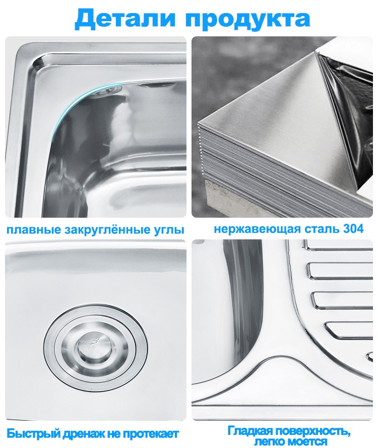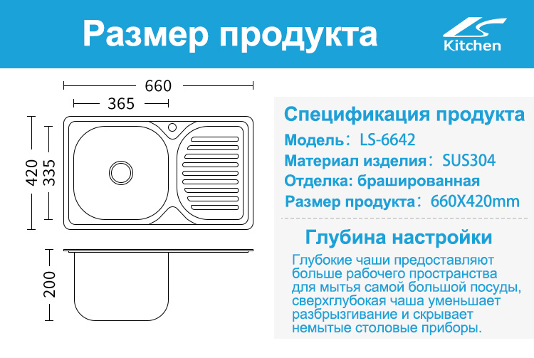 Небольшая кухонная мойка из нержавеющей стали с одной чашей и крылом для сушки LS-6642, переносная мойка