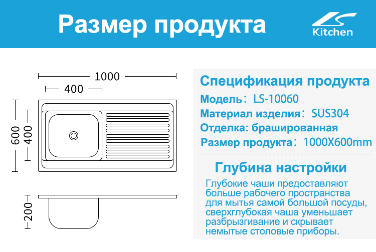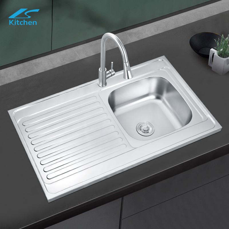 Оптовая продажа кухонной мойки из нержавеющей стали 304/201 LS-10060, одинарная чаша с полкой для хранения
