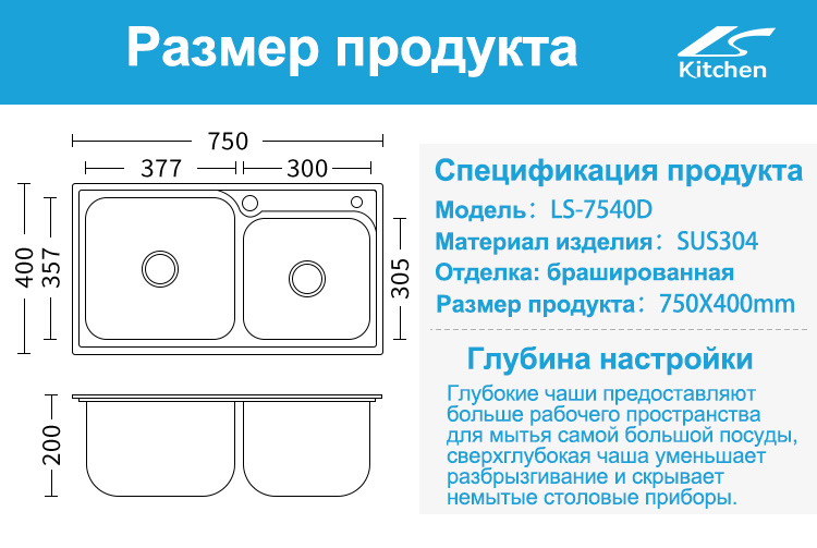 Профессиональная оптовая мойка ручной работы LS-7540D, двойная мойка из нержавеющей стали высокого качества
