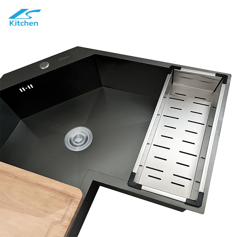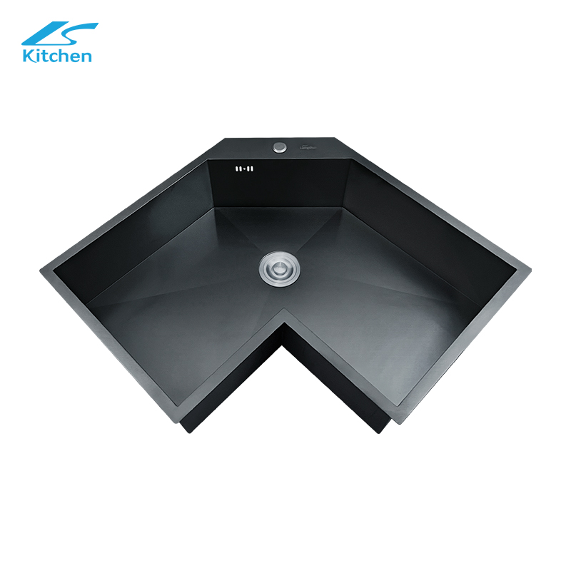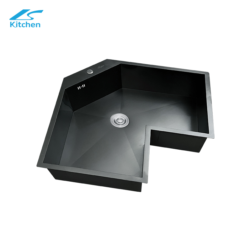Семейная гостиничная раковина ручной работы Nano black modern light luxury в стиле люкс L-образной формы LS-7848SHB-R