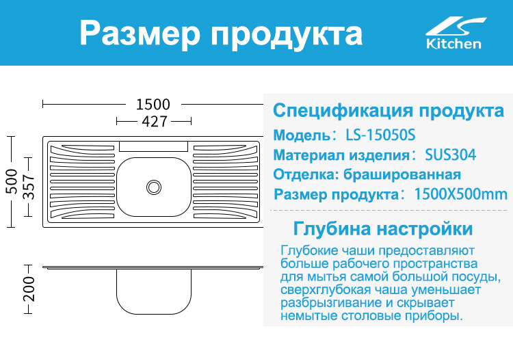 Стол для производства кухонных машин в сельской местности с одной раковиной LS-15050S кухонная раковина из нержавеющей стали
